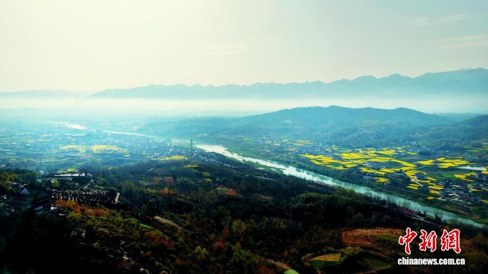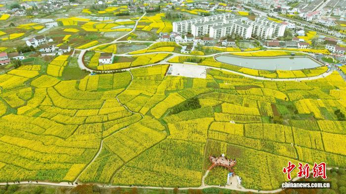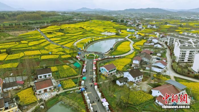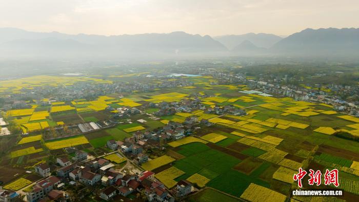 图为成片的油菜花展铺成1幅梓里绘卷。谯胜海 摄